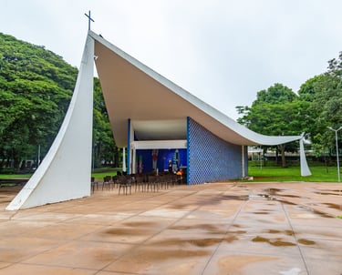Primeiro templo religioso construído em Brasília, a Igrejinha de Nossa Senhora de Fátima se destaca pelo formato singular e pela importância histórica para a capital. Projetada por Oscar Niemeyer, possui painéis de azulejos de Athos Bulcão e é um dos símbolos da fé e da arquitetura modernista da cidade. Parada para fotos.